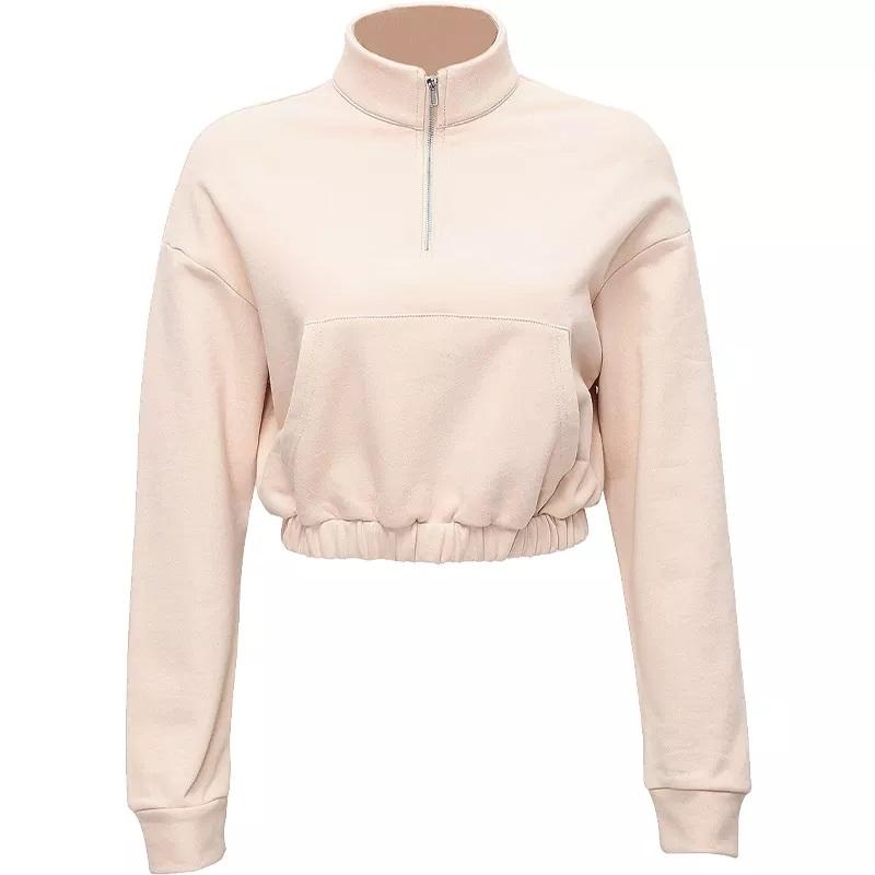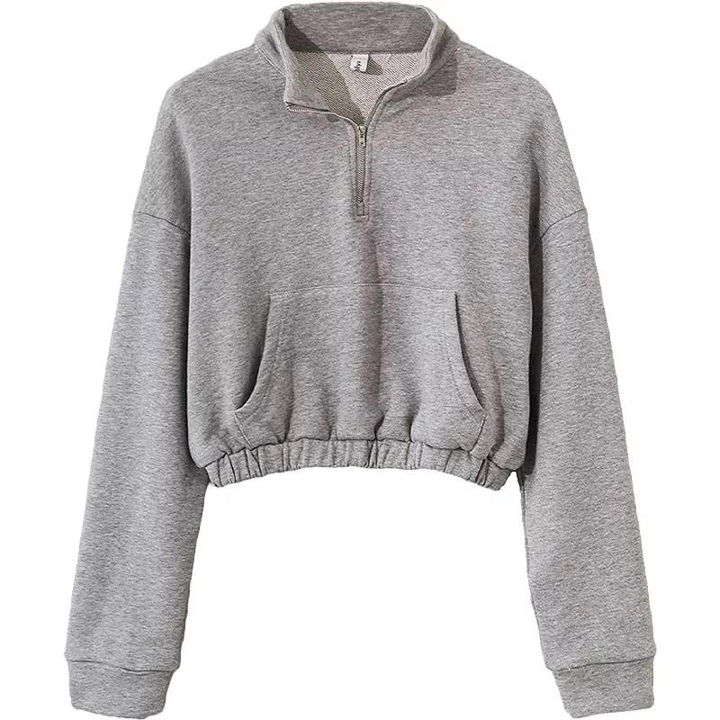 GAF เสื้อสเวตเชิ้ตผู้หญิงแขนยาวมีฮู้ดครึ่งซิป,เสื้อครอปทอปผ้าฝ้ายออร์แกนิคปักโลโก้ได้ตามต้องการ
