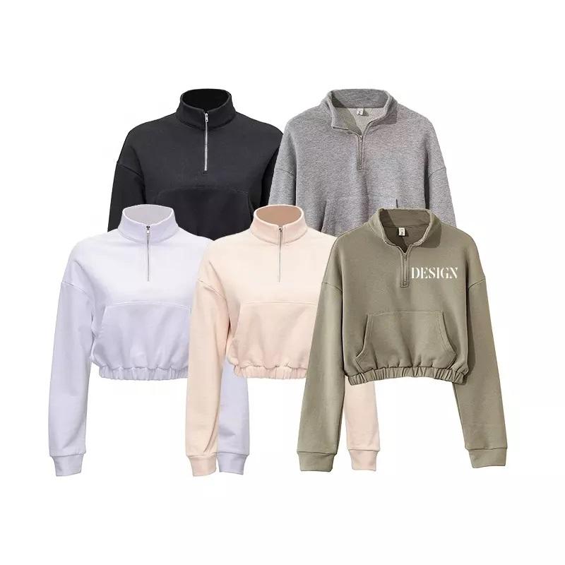 GAF เสื้อฮู้ดมีซิปแขนยาวครึ่งแขน,เสื้อครอปลำลองเอวลอยผ้าคอตตอนหนาไซส์ใหญ่พิเศษเสื้อสำหรับใส่ฝึกฝน