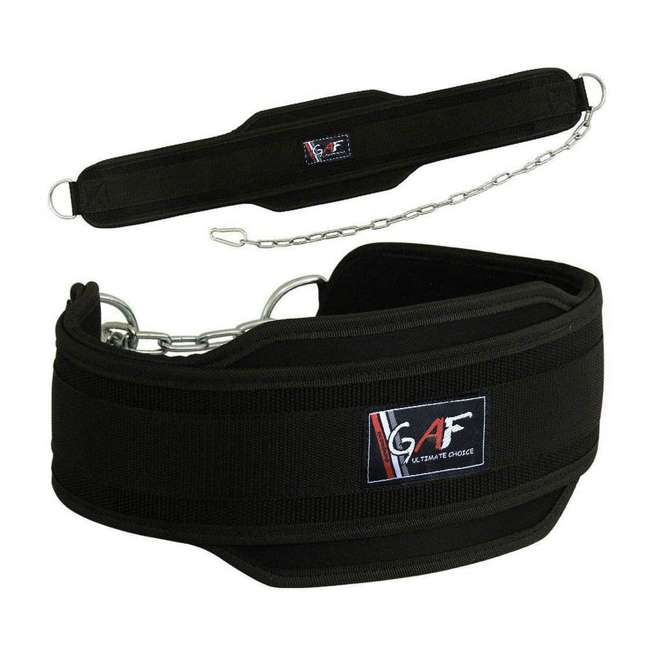 GAF คุณภาพสูงยกน้ําหนักจุ่มเข็มขัดพร้อม Neoprene ยิมฟิตเนสออกกําลังกายคู่สนับสนุน Neoprene Dip เข็มขัด