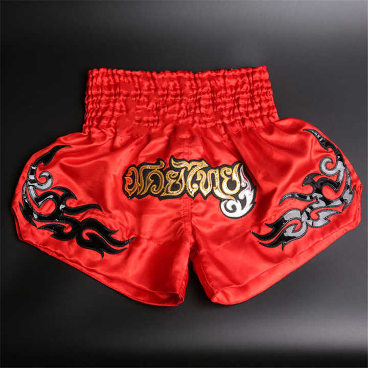 GAF muay กางเกงขาสั้นแบบไทยกางเกงมวยสำหรับผู้ชายเสื้อผ้าฝึกศิลปะการต่อสู้คิกโรงงานโลโก้ออกแบบได้ตามต้องการ