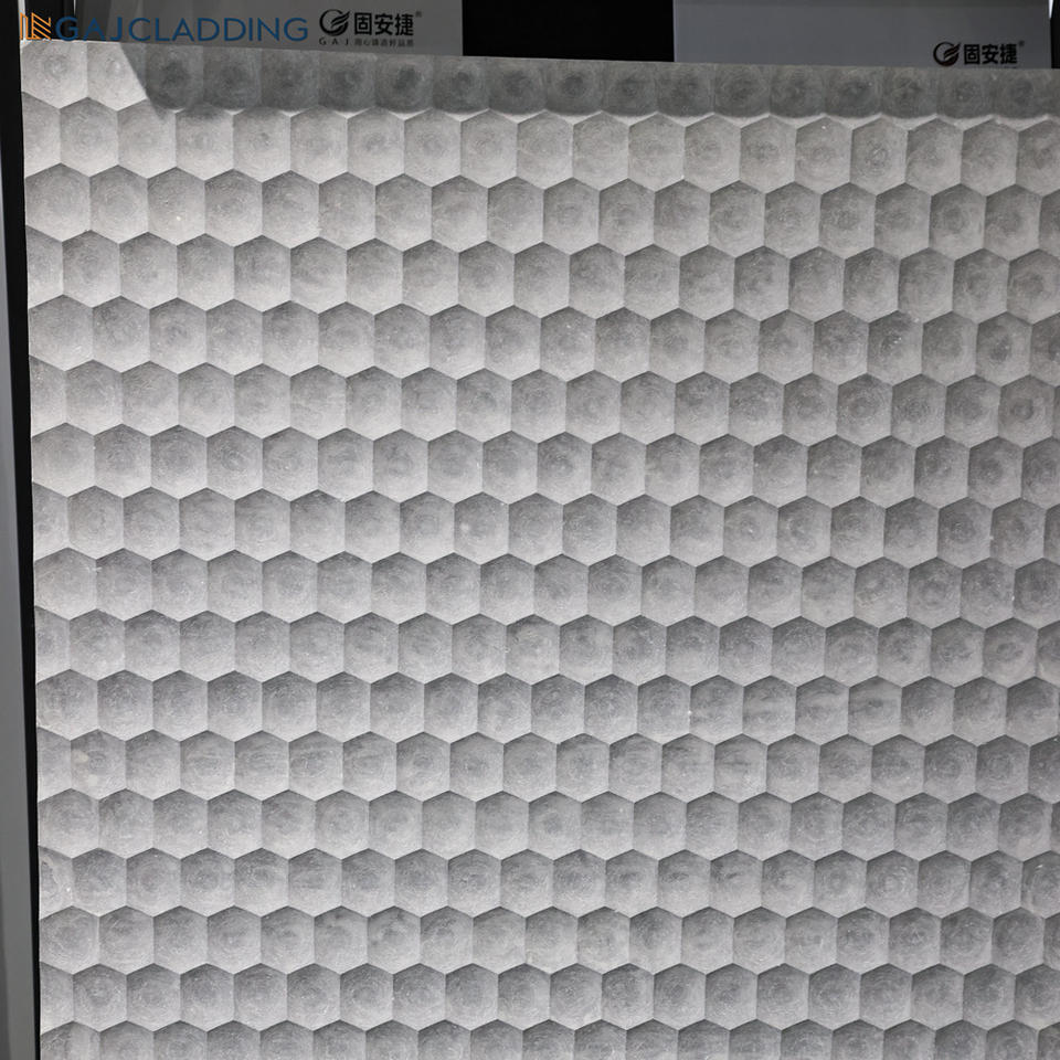 แผ่นผนังไฟเบอร์ซีเมนต์เคลือบผิวลายรังผึ้ง 3 มิติ GAJ พร้อมร่องสำหรับติดตั้ง แผ่นผนังตกแต่งสมัยใหม่ ทนไฟ น้ำหนักเบา