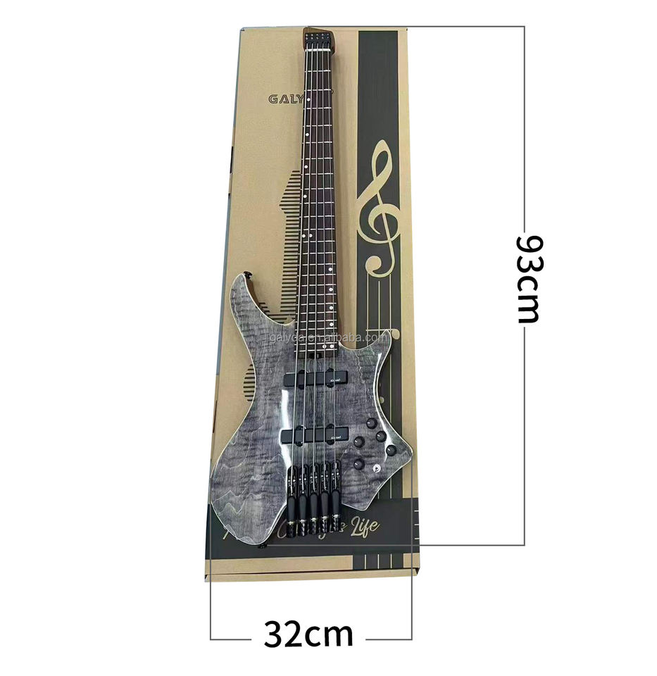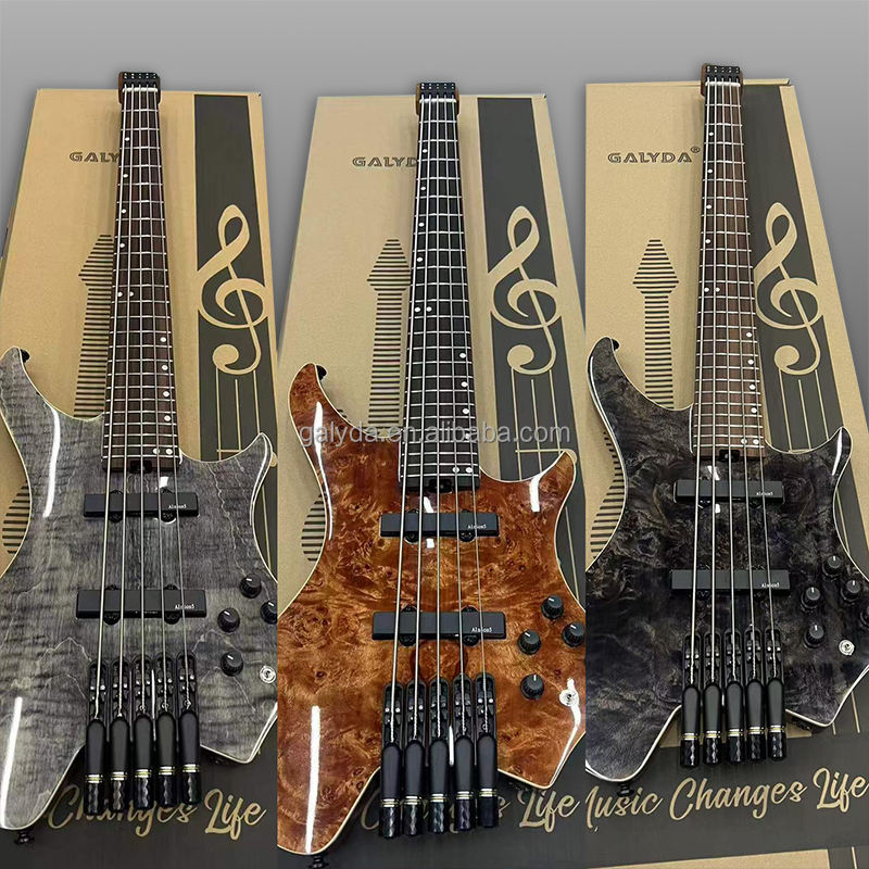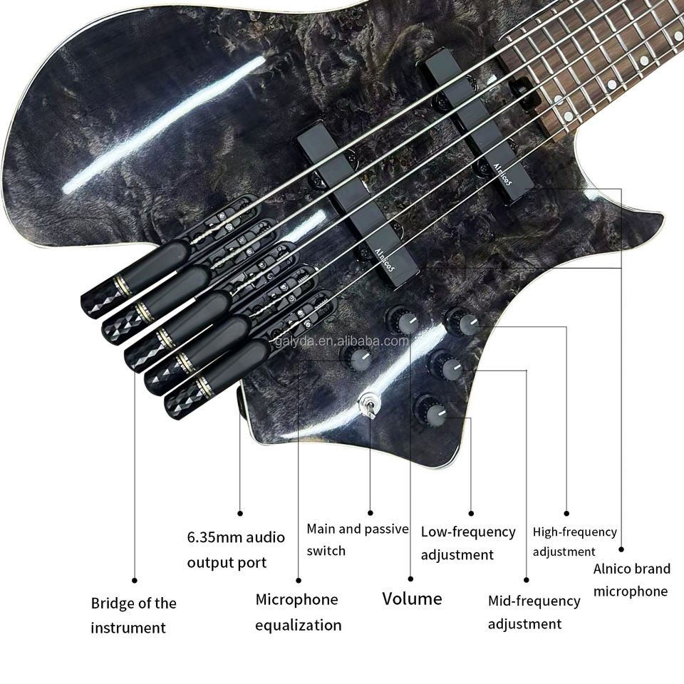 กีตาร์เบสไฟฟ้า GALYDA G093 แบบไม่มีหัว 5 สาย ตัวบอดี้วีเนียร์เมเปิลเบิร์ล เคลือบเงา แบบ Single Cutaway ราคาประหยัด