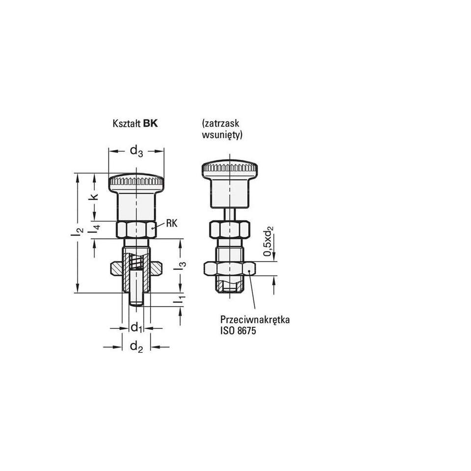 Ganter Griff locking PIN GN 817 D1 4มม. D2ม. 8X1มม. L1 4มม. st.w/o ล็อคบล็อก w. น็อตเคาน์เตอร์