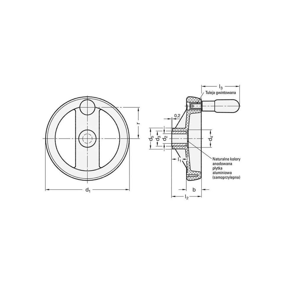 Ganter Griff spoked handwheel GN 522 W 22 mm D1 125 mm D2 12 mm TYPE R = พร้อมที่จับหมุนได้