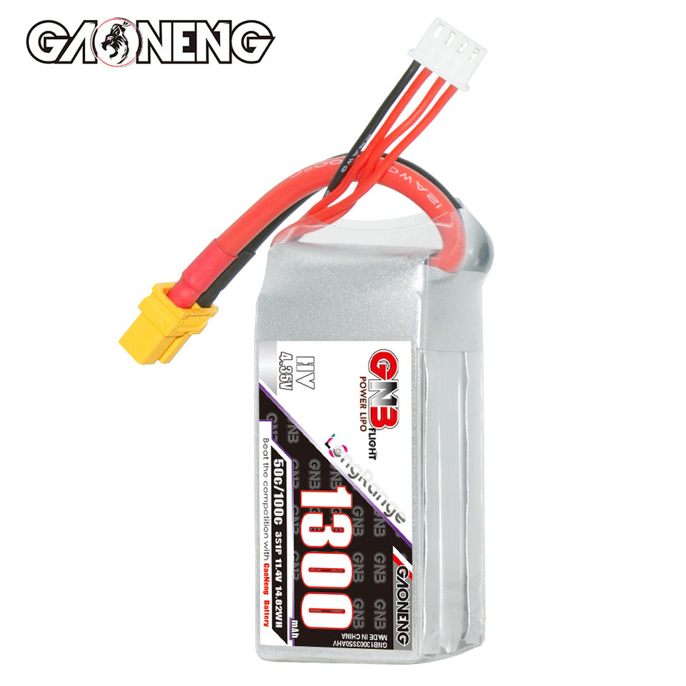 GAONENG GNB 1300MAH 11.4V HV 3S 50C 100C XT60 แบตเตอรี่ลิโปซอฟท์แพ็คระยะไกลฟรีสไตล์ FPV DRONE ชาร์จได้