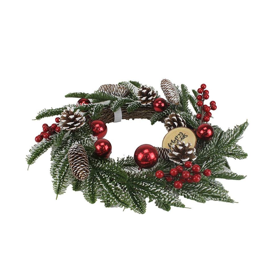 พวงมาลัยประดับด้วยใบสนที่ปกคลุมด้วยหิมะ/โคนสนและผลเบอร์รี่สีแดง 50ซม.