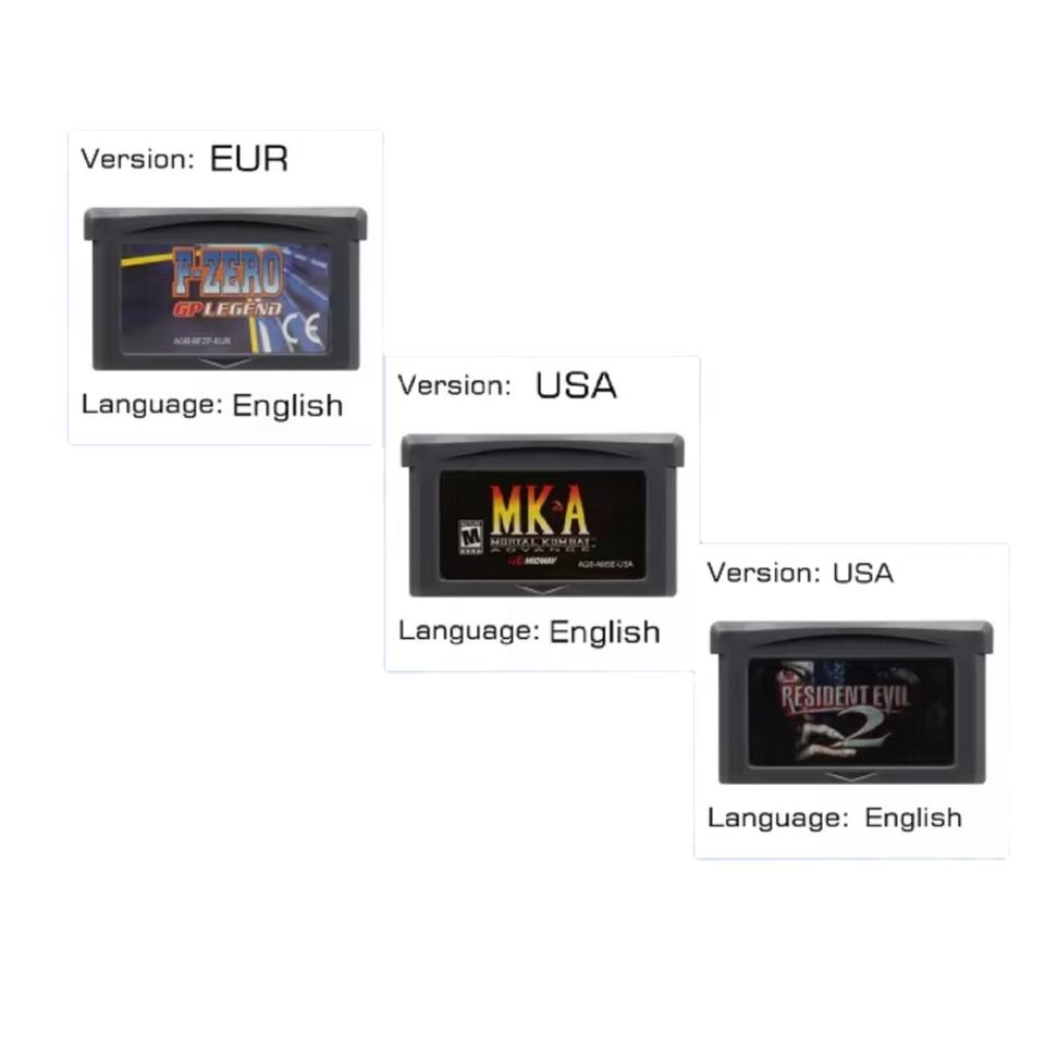 ตลับเกม GBA F-Zero สำหรับ Legend Resident Evil 2สำหรับคอนโซลวิดีโอเกมล่วงหน้า Kombat สำหรับเกม pokmon สำหรับเกมบอย