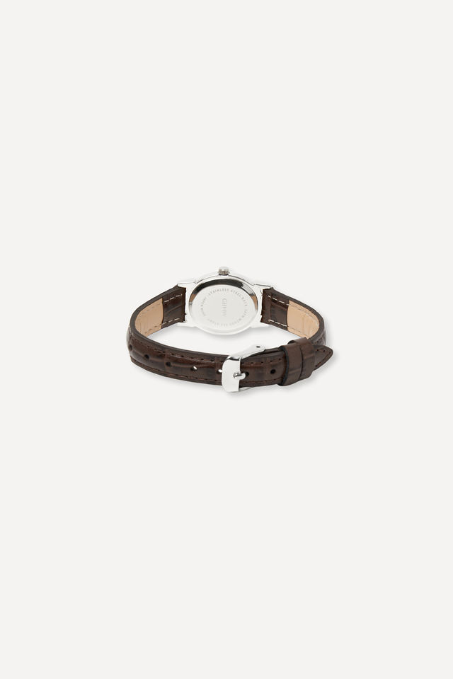 GBHW คลาสสิค ARO นาฬิกาข้อมือสีเงินสีน้ำตาลนาฬิกาควอทซ์สุดหรูนาฬิกาอะนาล็อกที่สง่างามสำหรับผู้หญิงพร้อมสายหนัง