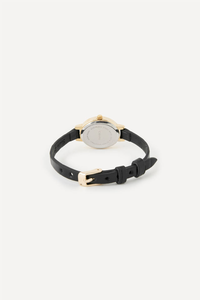 นาฬิกาข้อมือหนังทรงรีคลาสสิก GBHW สีทองดำ ระบบควอตซ์ ตัวเรือนสแตนเลส สไตล์หรูหราสง่างาม