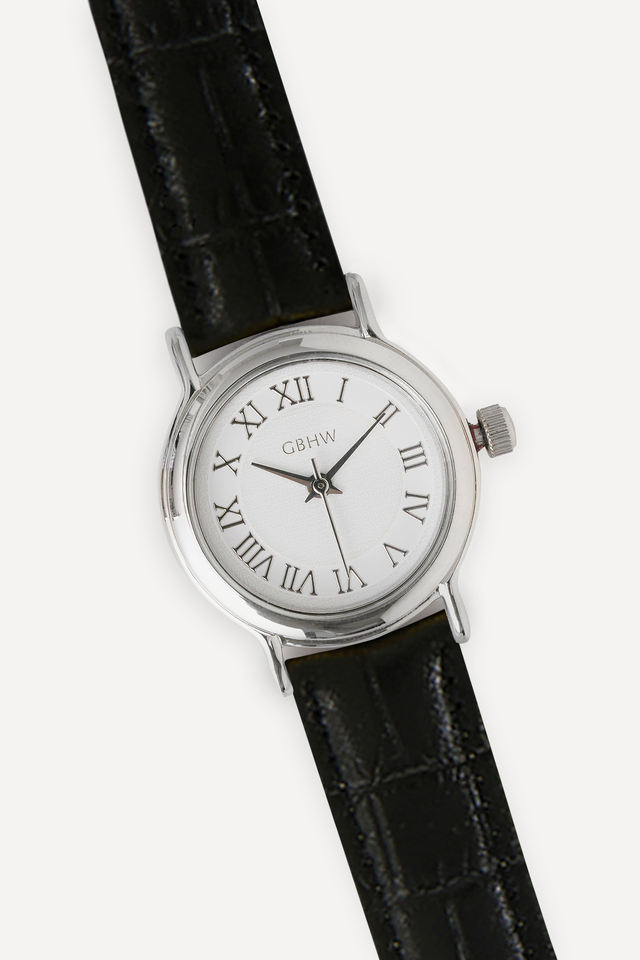 นาฬิกาข้อมือคลาสสิก GBHW สีเงิน-ดำ ระบบควอตซ์ ตัวเรือนสแตนเลสสตีลหรูหรา สายหนัง นาฬิกาแฟชั่น