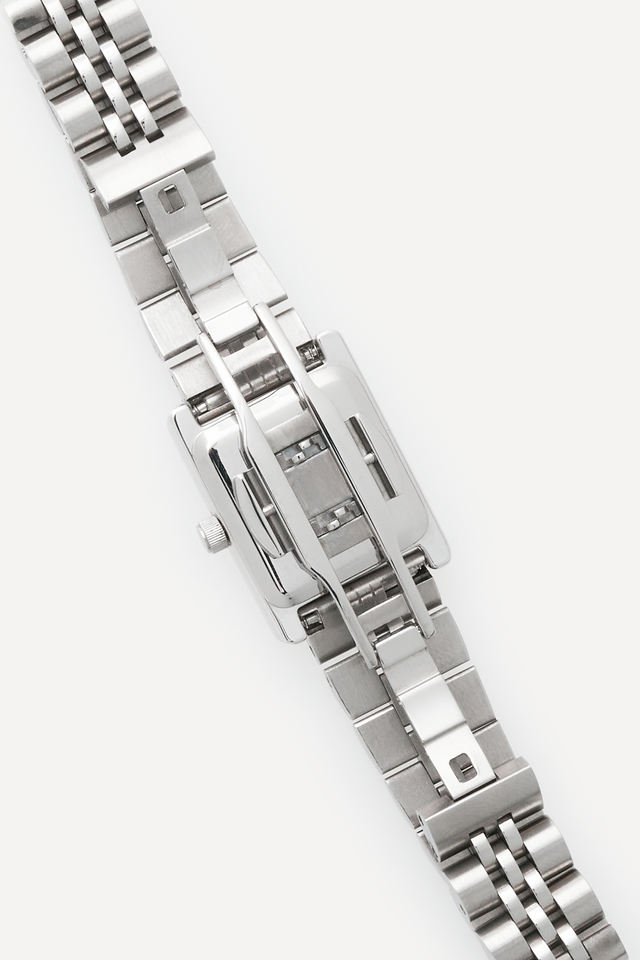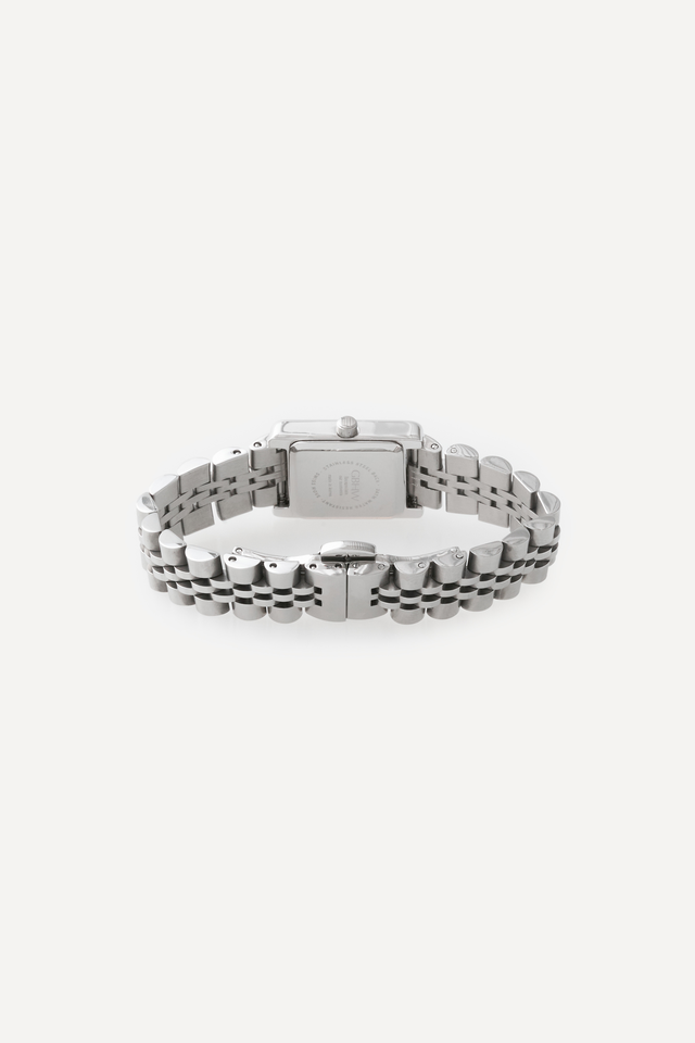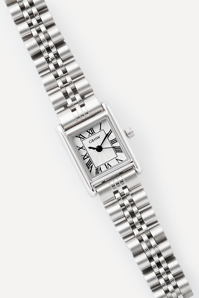 นาฬิกาข้อมือโลหะทรงสี่เหลี่ยม GBHW สีเงิน นาฬิกาควอทซ์หรูหรา นาฬิกาอะนาล็อกที่สง่างามสำหรับผู้หญิง พร้อมสายสแตนเลส