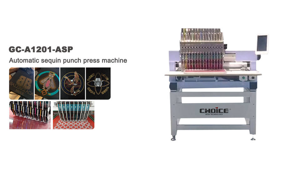 เครื่องปักอุตสาหกรรมอัตโนมัติ GC-A1201-ASP 450*350มม. 12เข็มหัวเดี่ยวเลื่อมแบนแกนมอเตอร์คอมพิวเตอร์ใหม่