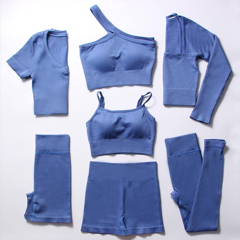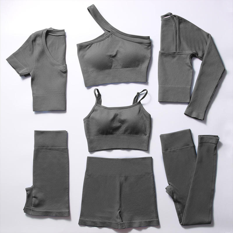 ชุดออกกำลังกายแบบไร้รอยต่อสำหรับผู้หญิงชุดเล่นโยคะฟิตเนส2ชิ้น3/5ชิ้น