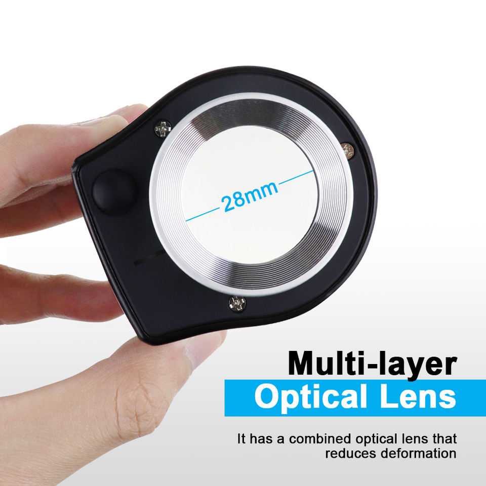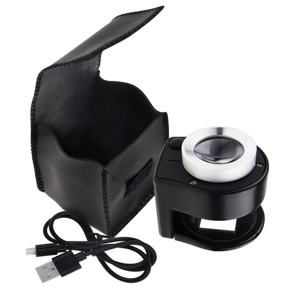 แว่นขยายเครื่องประดับพร้อมไฟ6ดวงและเคสหนังสังเคราะห์แบตเตอรี่แบบชาร์จไฟได้