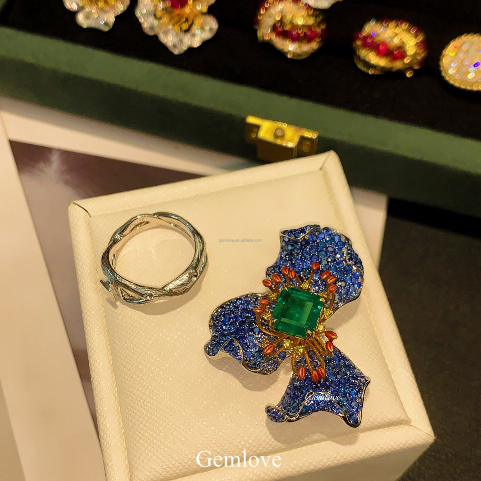 แหวนพลอยไพลินสีน้ำเงิน GEMLOVE 6.683 กะรัต และพลอยมรกต 2.85 กะรัต - ทอง 14K/18K ลายดอกไม้ พร้อมใบรับรอง IGI