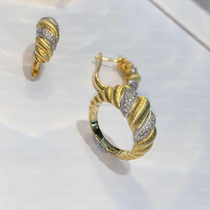 Gemlove ชุดซ้อนกันได้สีทอง18K 5.58g gemlove-วงแหวนบิดและต่างหูรูปครัวซองต์เพชรสำหรับห้องปฏิบัติการ