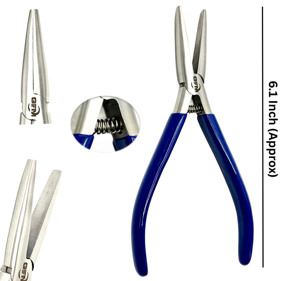 คีมต่อผมสแตนเลสปากแบนขนาด 6 นิ้ว ยี่ห้อ GEMSTONE ENTERPRISES ด้ามจับกันลื่นสีน้ำเงิน เครื่องมือถอดประกอบ สีเงิน