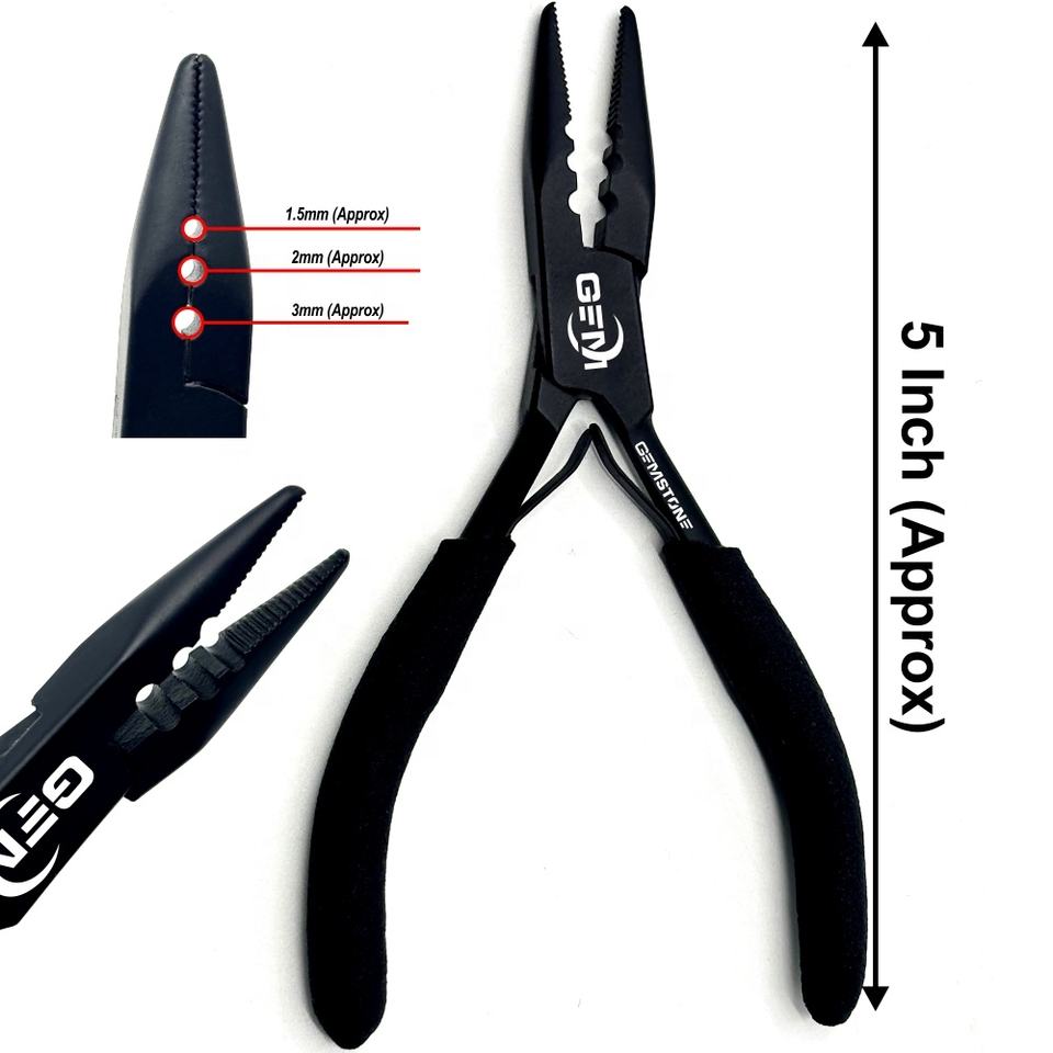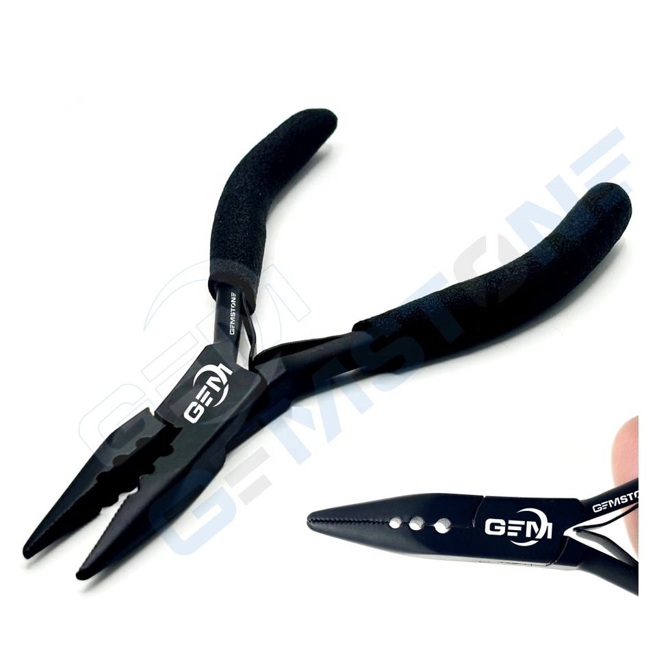 คีมต่อผมสแตนเลสสตีลขนาด 5 นิ้ว รุ่น P-61 จาก GEMSTONE ENTERPRISES แบบมืออาชีพ 3 รู ผิวเงาสีดำ ด้ามจับกันลื่น สำหรับงานไมโคร