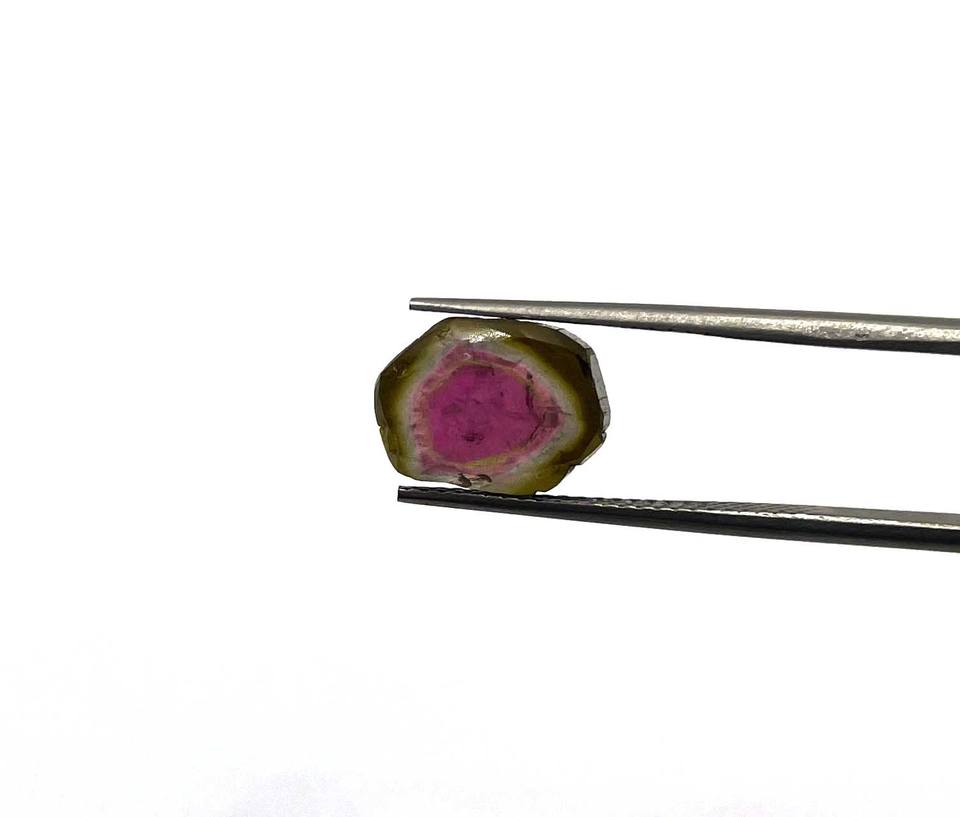 GEMWORLDJAIPUR IGI รับรอง 3A พลอยสีชมพูคุณภาพสูง 9 มม. แหวนสีเขียว พลอยทัวร์มาลีนสีเขียวธรรมชาติทรงแตงโมแบบแผ่น พลอยเม็ดเดี่ยว