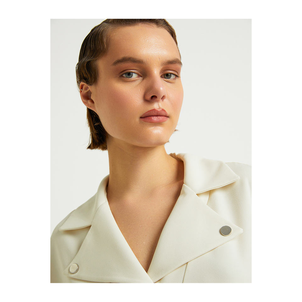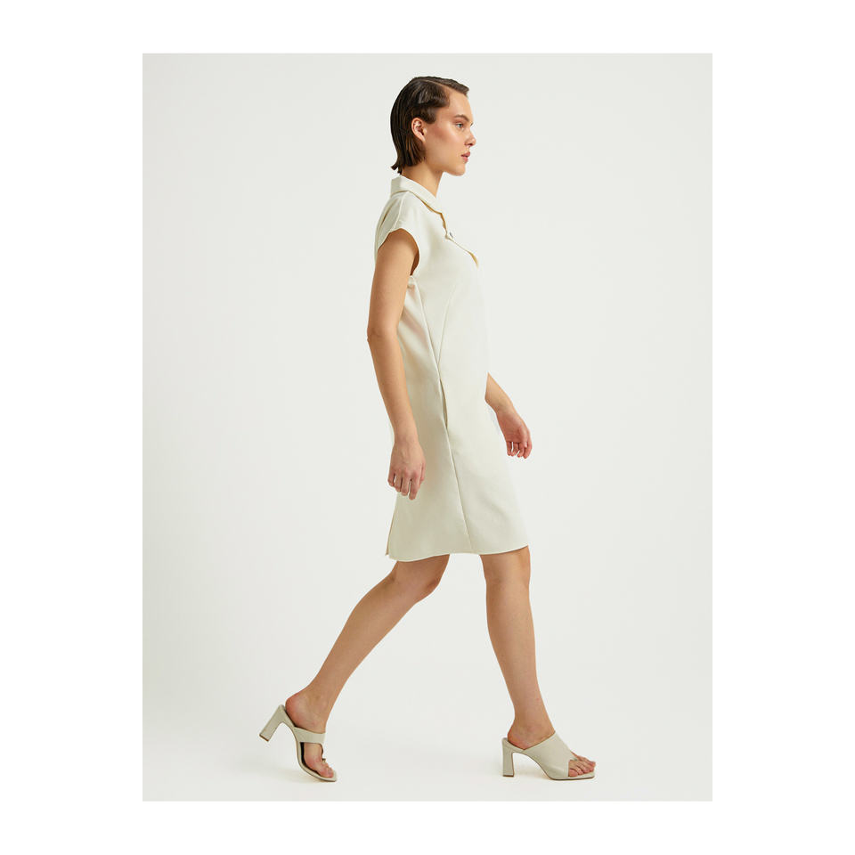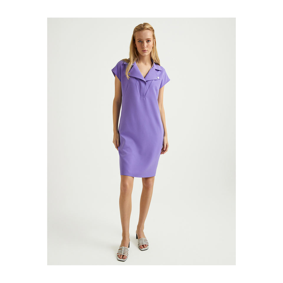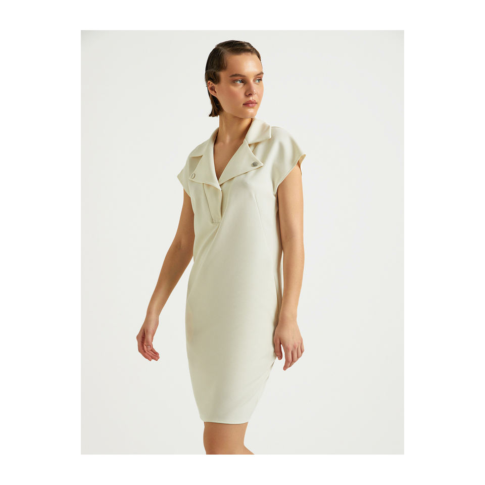 Genİşv yakali MIDI เดรสแขนยาวถึงข้อศอกสำหรับใส่ทำงานหรูหรา