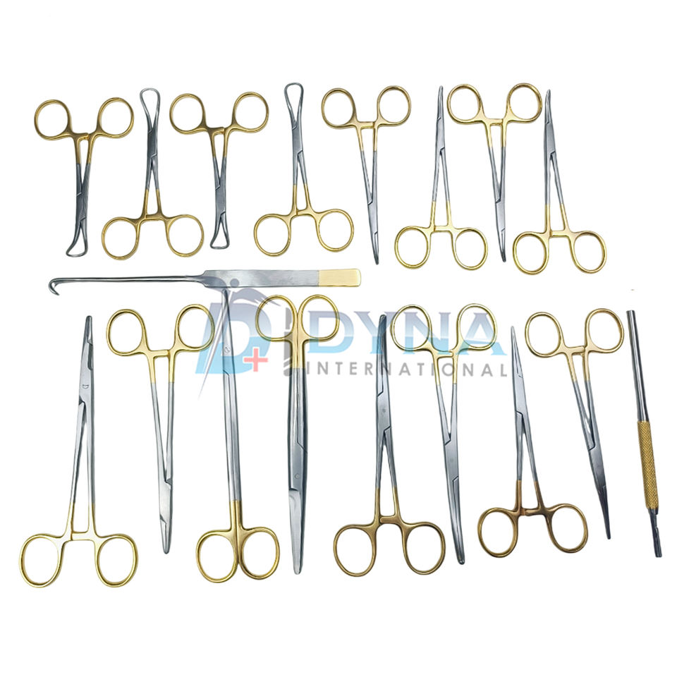 ชุดเครื่องมือผ่าตัดทั่วไป17ชิ้นชุดเครื่องมือผ่าตัดด้ามทอง