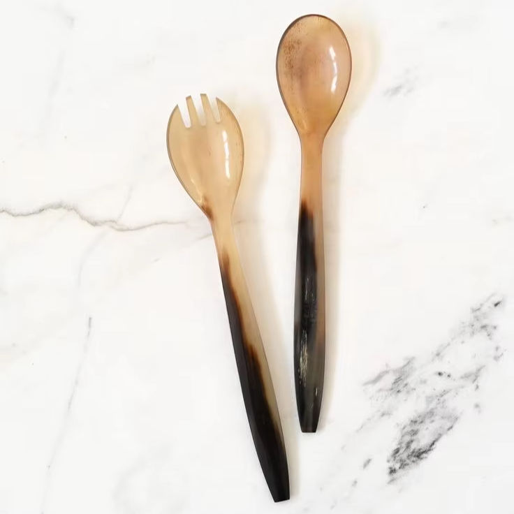 ชุดช้อนส้อมมีกระจกเงาแบบแบนช้อนเขาควายธรรมชาติขัดเงาสำหรับตกแต่งโต๊ะในร้านอาหารสไตล์สัตว์ไม่เหมือนใคร