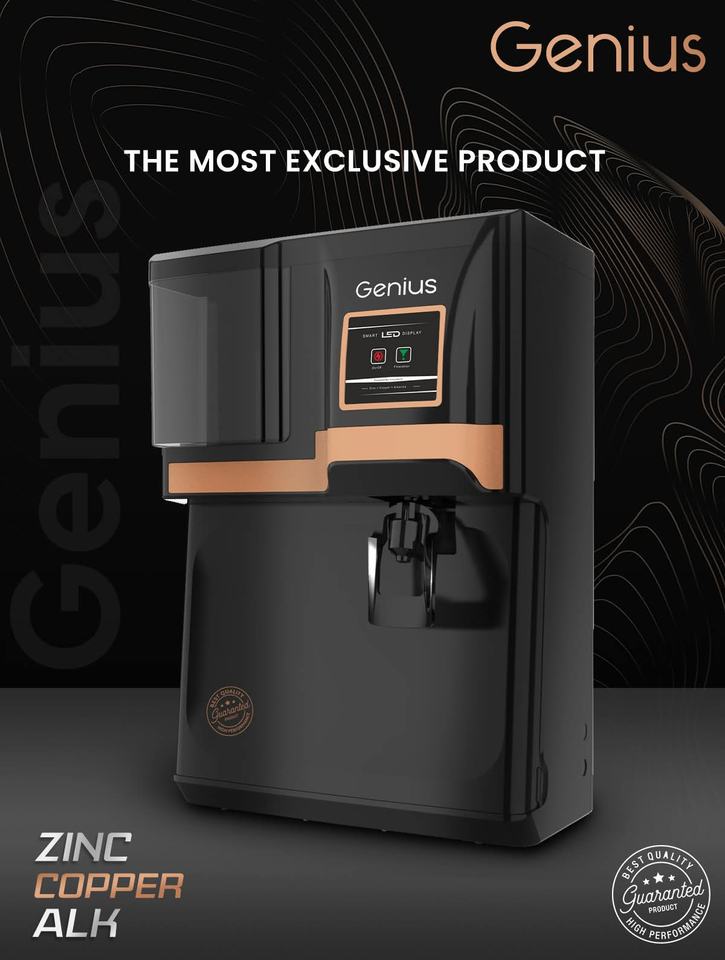 ระบบกรองน้ำดื่มแบบออสโมซิสผันกลับ GENIUS BLACK COPPER สำหรับใช้ในบ้าน ติดผนังหรือวางบนโต๊ะ พร้อมไฟ LED เกรดสำหรับอาหาร