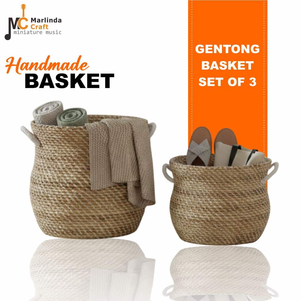 ชุดตะกร้าเก๋งตง 3 ใบ ทำจากเปลือกต้นกล้วย งานฝีมือ