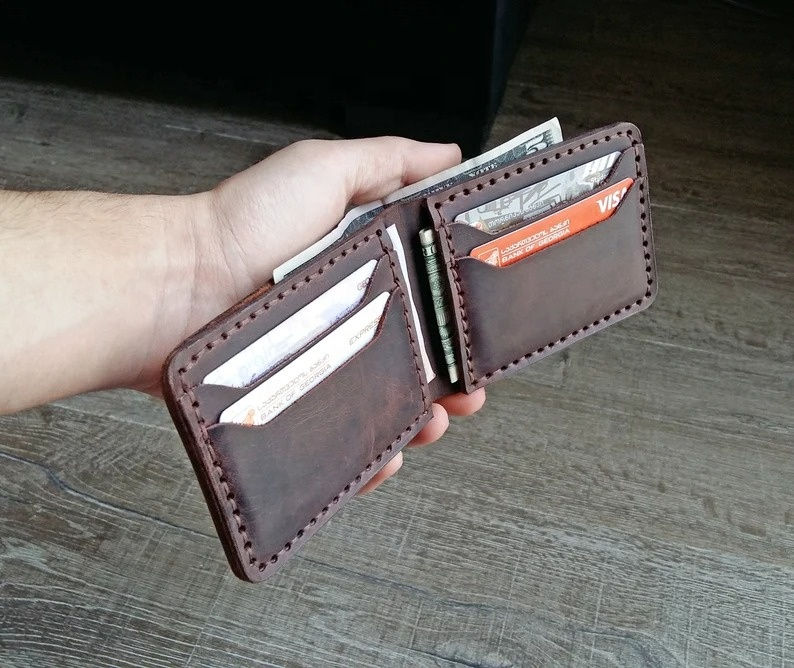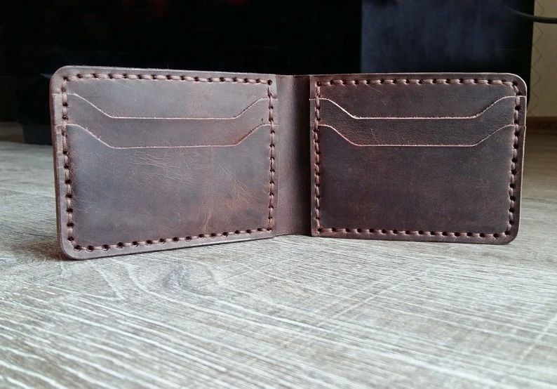 กระเป๋าสตางค์หนังแท้ GENTS GARB รุ่น Tiding สีน้ำตาล แบบพับสองตอน ซับในโพลีเอสเตอร์คุณภาพสูง พร้อมช่องใส่เหรียญ ปิดแบบสั่งทำพิเศษ