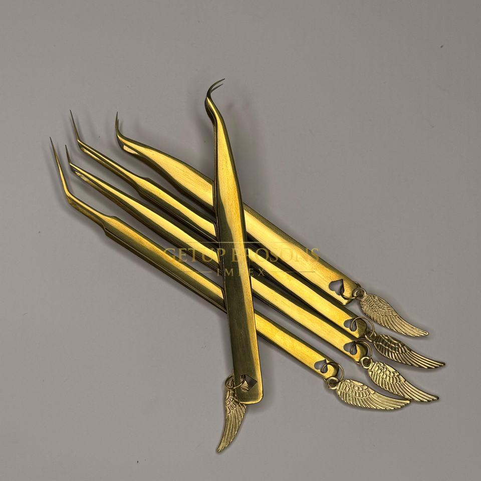 Getup brosons impex gbi แหนบต่อขนตาปลอม45/90องศาสีทองปริมาณรัสเซียมีปีกแยกทรงบูทมีฟัน