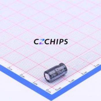 ตัวเก็บประจุแบบอิเล็กโทรไลต์อะลูมิเนียมแบบ Through-Hole รุ่น GF1C221ME110A00CV0 ขนาด D6.3xL11 มม. 220uF 20% 16V ขา 2.5 มม.
