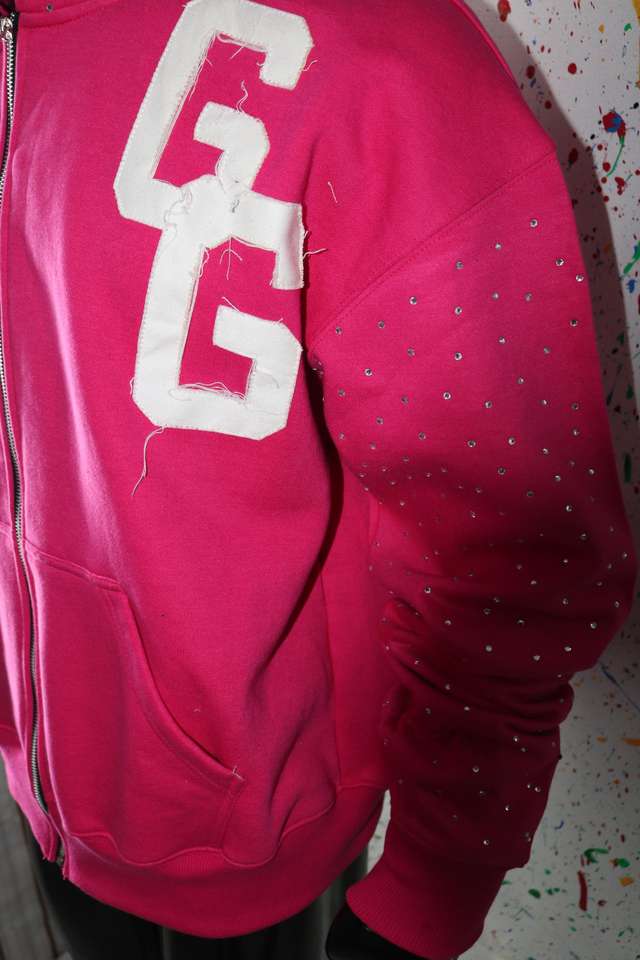 เสื้อฮู้ดดี้สีชมพู GG ซิป ผ้าฝ้าย 100% สำหรับผู้ชาย ใส่ในฤดูหนาว