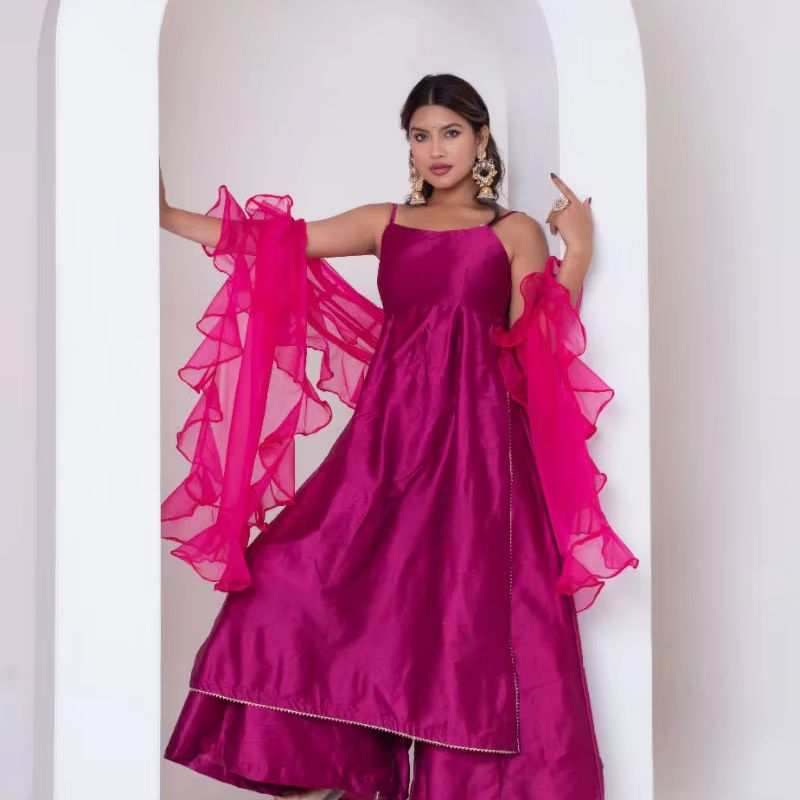 Ghazal raani ชุดลำลองผ้าไหมคอตตอนสีชมพูแบบลำลองมีขอบผ้าโปร่งมีขอบระบายอากาศและรอบเอวตามธรรมชาติ