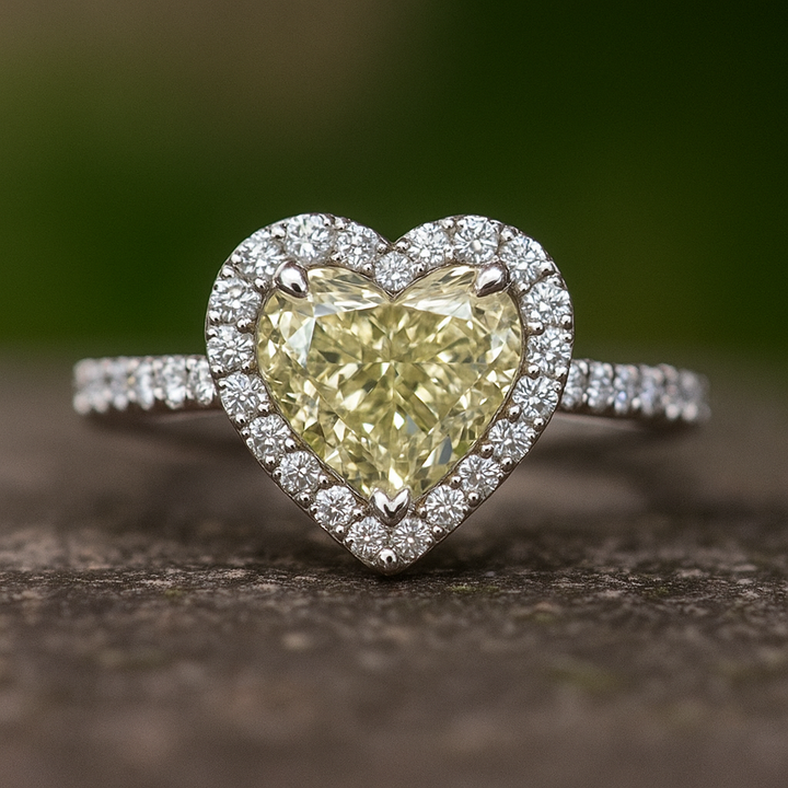แหวนหมั้นเพชรแท้สีเหลืองอ่อนแฟนซี น้ำหนักรวม 1.30 กะรัต ทองคำแท้ 18K ความใส VVS ชุบโรเดียมแบบสั่งทำพิเศษ