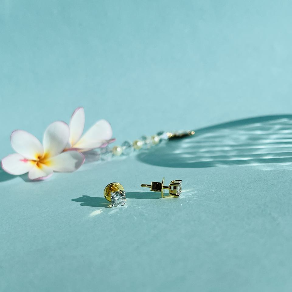 ต่างหูเพชรแท้ทรงกลมเจียระไนแบบบริลเลียนท์ 0.5 กะรัต ทองคำแท้ 18K สำหรับผู้ชายและผู้หญิง ดีไซน์เรียบหรู