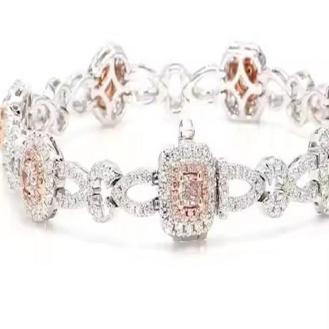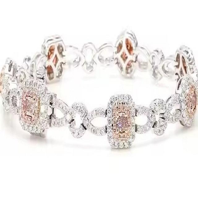 Gia ได้รับการรับรอง3.52กะรัต tw สร้อยข้อมือเทนนิสเพชรผสมสีชมพูธรรมชาติชุบทองและกุหลาบทองสำหรับของขวัญและปาร์ตี้