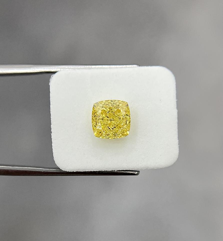 สำหรับการรับรอง VVS2ความชัดเจนแฟนซีสดใสสีเหลืองสดใสหลวมเพชร3.04กะรัตเบาะเพชรธรรมชาติตัดเครื่องประดับ