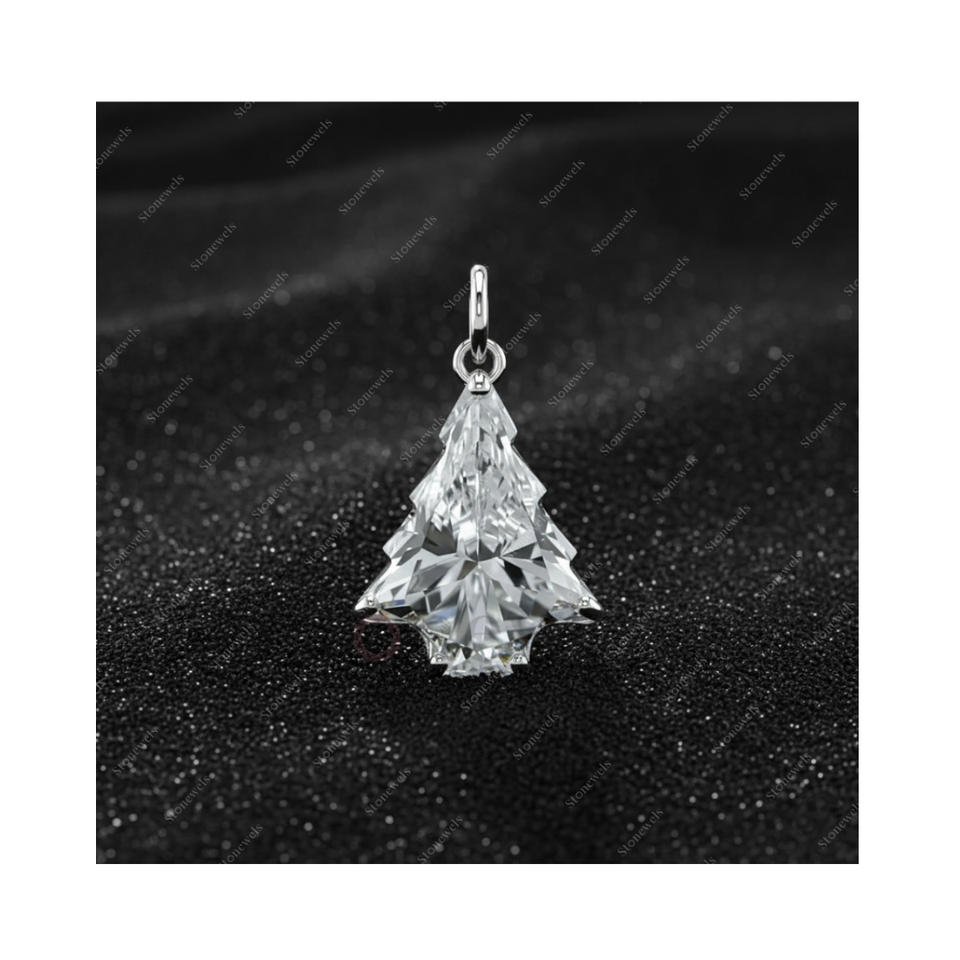 Solid Lab Grown Christmas Tree Shape Diamond Pendant