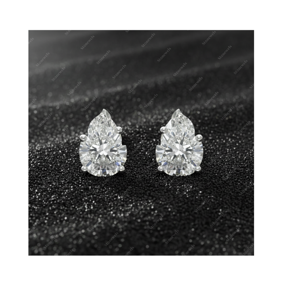 ต่างหูเพชรรูปทรงเปลวไฟ เกรด Solid Lab Grown