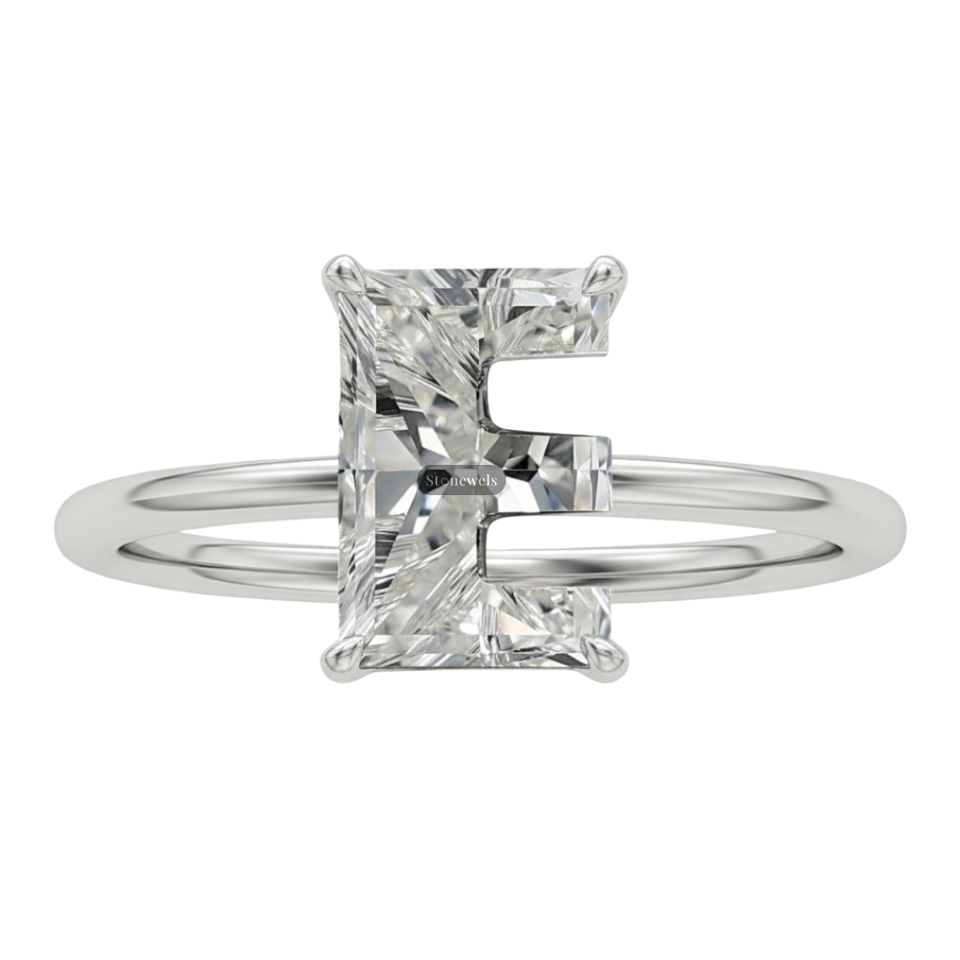 Product name:Solid Lab Grown Initial Alphabet Letter E Shape Diamond Ring