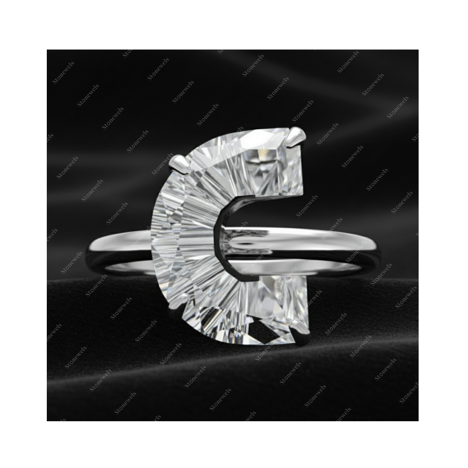 Solid Lab Grown Initial Alphabet Letter C Shape Diamond Ring