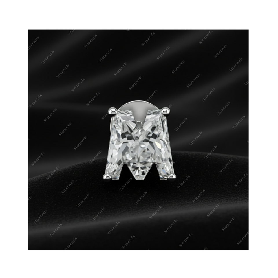 ต่างหูเพชรรูปตัวอักษร M แบบเรขาคณิต ทำจากเพชรสังเคราะห์คุณภาพสูง