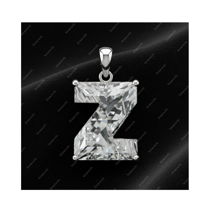 Solid Lab Grown Initial Alphabet Letter Z Shape Diamond Pendant