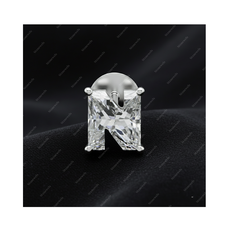 ต่างหูเพชรรูปตัวอักษร N เรซิ่น (Lab Grown) ทรงตัวอักษร
