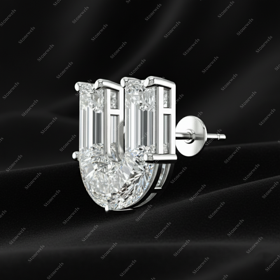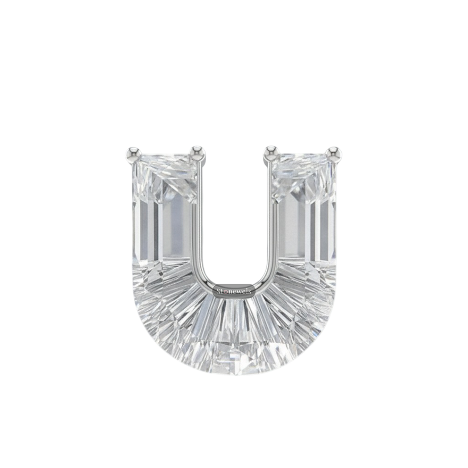 Solid Lab Grown Initial Alphabet Letter U Shape Diamond Earring