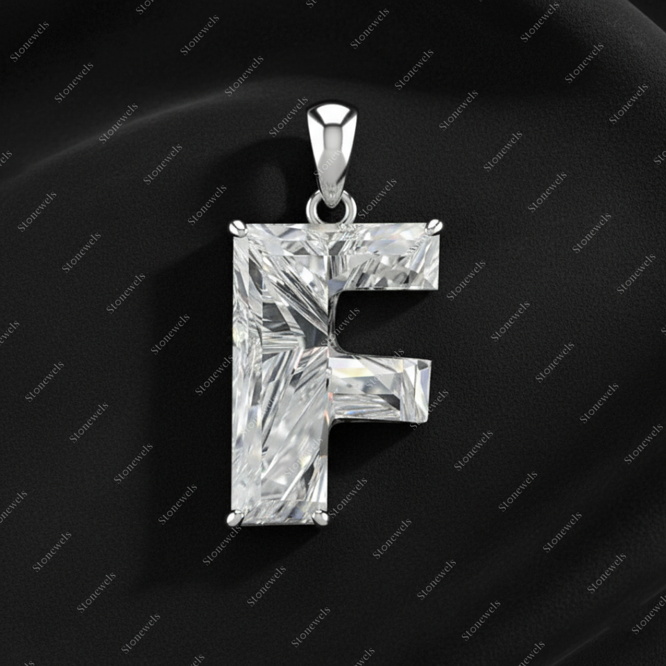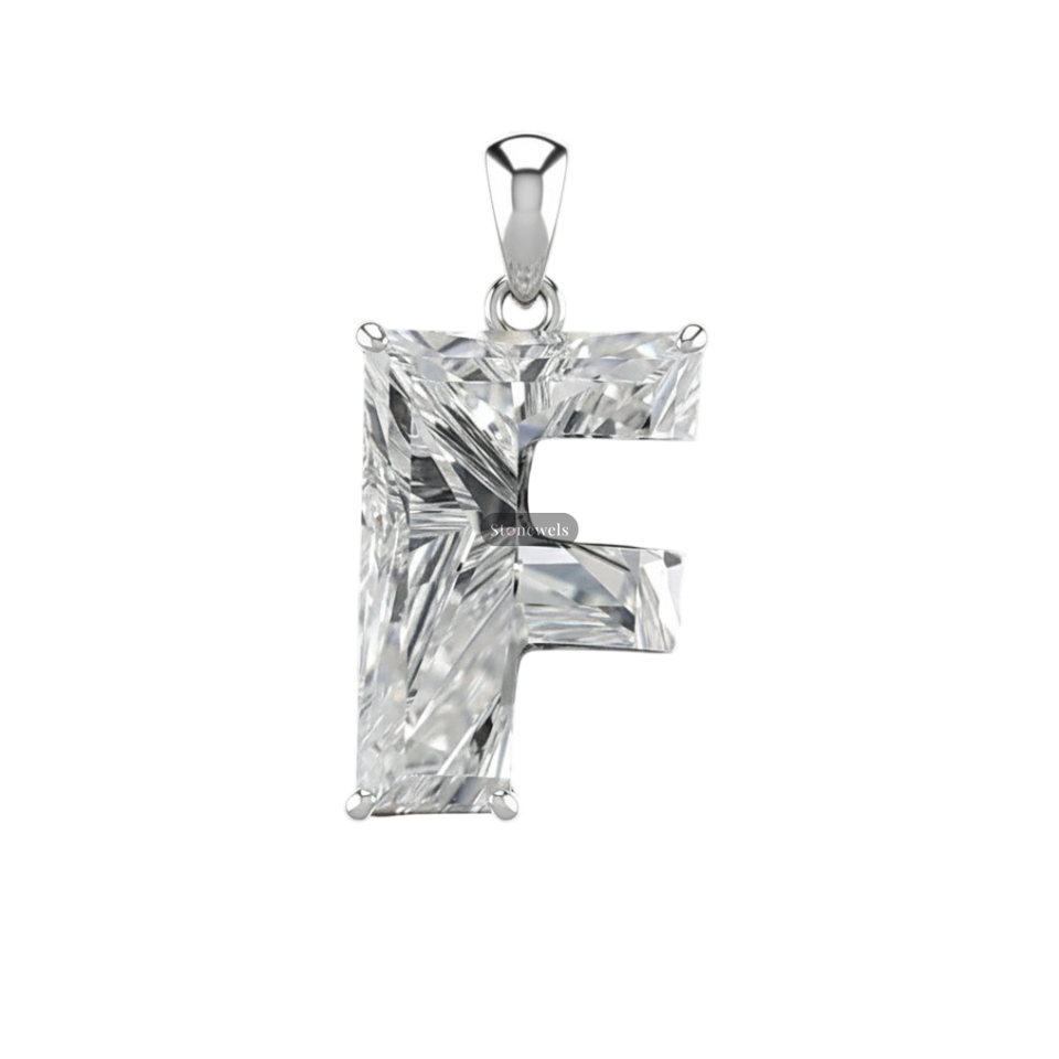 Product Name:Solid Lab Grown Initial Alphabet Letter F Shape Diamond Pendant