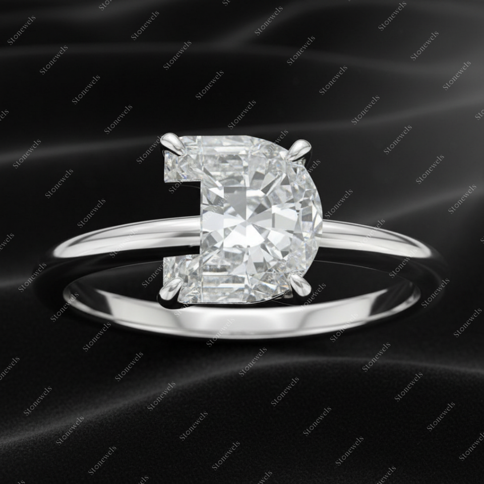 Product name:Solid Lab Grown Initial Alphabet Letter D Shape Diamond Ring