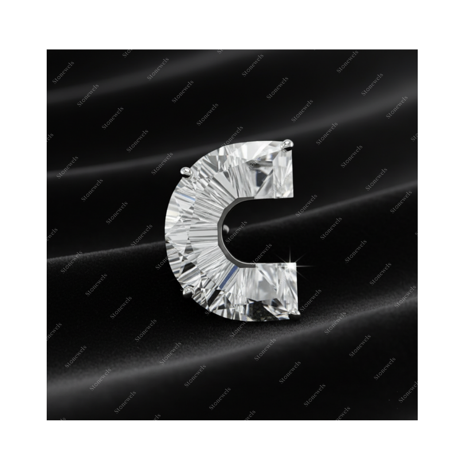 ต่างหูเพชรรูปตัวอักษร C เรือนแข็ง ทำจากเพชรสังเคราะห์