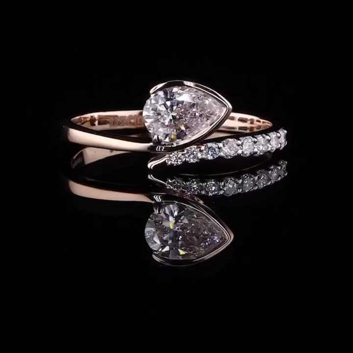 แหวนเพชรทรงลูกแพร์ 1.00 กะรัต ผลิตในห้องปฏิบัติการ รับรองโดย GIA ทองคำ 14K สีโรสโกลด์ ดีไซน์หรูหรา ของขวัญวาเลนไทน์/หมั้น/แต่งงานสำหรับภรรยา