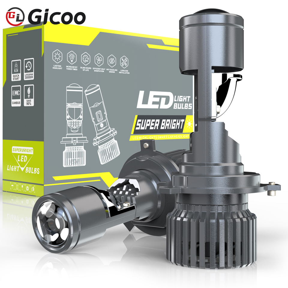 Gicoo หลอดไฟหน้า LED S6 80W, โปรเจคเตอร์ H4เลนส์สำหรับรถจักรยานยนต์รถยนต์12V ไฟรถยนต์80W 16000LM